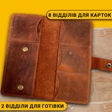 2 місткі відділи для готівки, 8 слотів для банківських карток та документів, кишеня на блискавці для монет та дрібниць