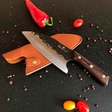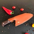 Для зручності транспортування ніж комплектується шкіряним чохлом, що робить його ідеальним вибором для виїздів на природу, походів або активного відпочинку. Цей професійний кухонний ніж стане в нагоді як на кухні, так і поза домом, будучи універсальним інструментом у вашому арсеналі.