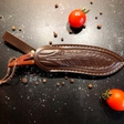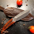 Для зручності транспортування ніж комплектується шкіряним чохлом, що робить його ідеальним вибором для виїздів на природу, походів або активного відпочинку. Цей професійний кухонний ніж стане в нагоді як на кухні, так і поза домом, будучи універсальним інструментом у вашому арсеналі.