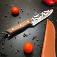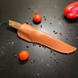 Для зручності транспортування ніж комплектується шкіряним чохлом, що робить його ідеальним вибором для виїздів на природу, походів або активного відпочинку. Цей професійний кухонний ніж стане в нагоді як на кухні, так і поза домом, будучи універсальним інструментом у вашому арсеналі.
